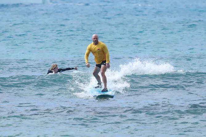 Je vais être honnête—j’étais un peu stressé en marchant sur le sable brûlant de Waikiki, tenant une planche de surf qui me paraissait bien plus grande que prévu. Le soleil tapait fort, mais une brise salée venue de l’océan rendait l’atmosphère plus légère. Notre moniteur, Kaleo, avait un rire facile et ne semblait pas du tout perturbé par nos tentatives maladroites pour garder l’équilibre lors de l’échauffement sur le sable. Il nous a montré comment se lever sur la planche—mes genoux n’étaient pas vraiment d’accord au début. Quelqu’un est même tombé juste en s’entraînant à terre, et on a tous éclaté de rire. Ça a vraiment détendu l’ambiance.