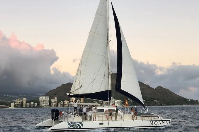 Votre journée comprend tous les frais et taxes, l’accès aux toilettes à bord, et un équipage local qui vous guidera lors de la baignade à Waikiki puis pendant la croisière cocktail devant Diamond Head avant le retour à terre.