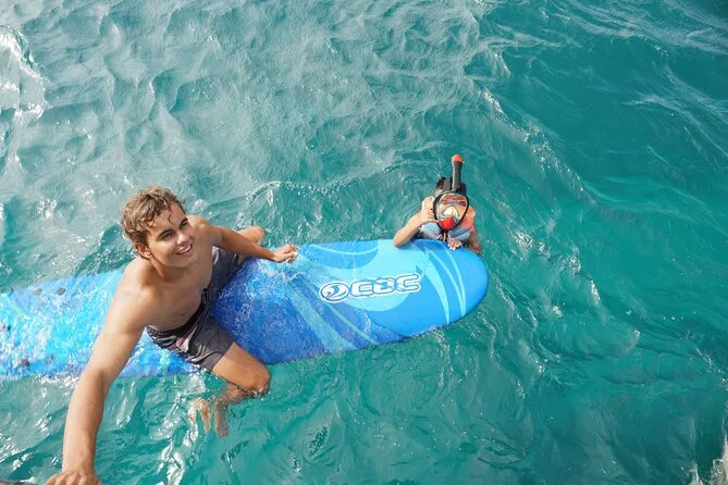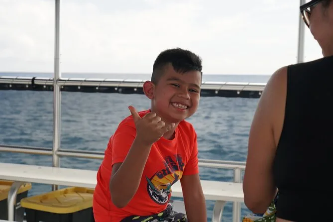 Les enfants de 3 à 7 ans peuvent venir à bord mais ne sont pas autorisés à entrer dans l’eau ; les bébés doivent rester avec un adulte et ne peuvent pas faire de snorkeling.