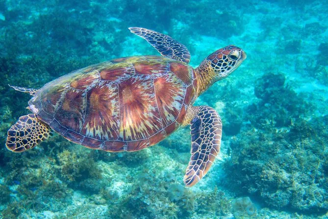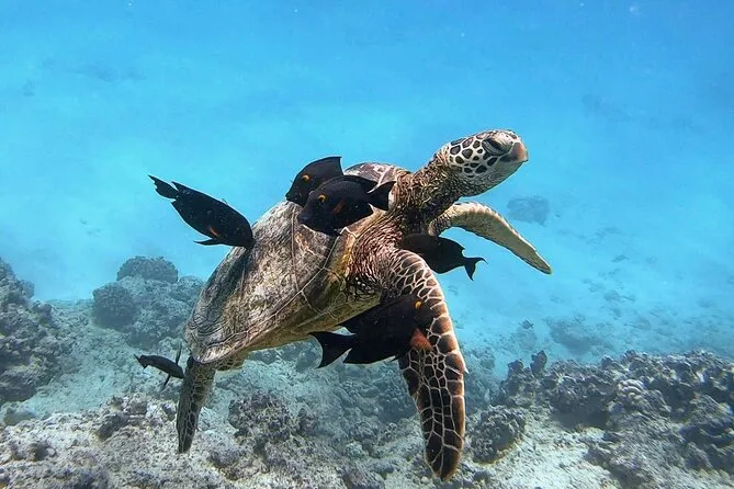 Vous pourrez observer des tortues vertes hawaïennes (honu), différents poissons de récif, et parfois des dauphins ou des baleines à bosse en saison.
