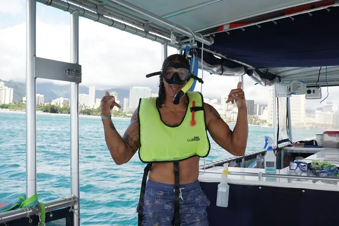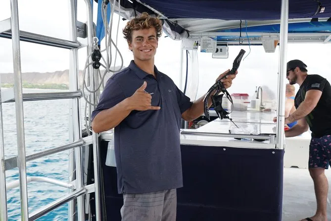 Votre journée comprend tout l’équipement de snorkeling (masque, palmes, gilet), de l’eau en bouteille à bord du catamaran, ainsi qu’une initiation pratique avec un capitaine agréé USCG ou un guide local avant d’entrer dans l’eau à Turtle Canyon, près de Waikiki et Diamond Head. Le pont offre de nombreux espaces ombragés et des toilettes sont disponibles tout au long de la sortie — pensez juste à prendre votre maillot et votre crème solaire avant de revenir à terre.