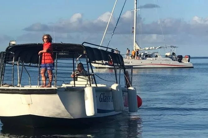 Votre journée comprend une balade de 30 minutes en bateau à fond de verre autour d’Anaeho’omalu Bay avec des bancs ombragés. Un naturaliste local vous guide pour observer poissons tropicaux et tortues vertes glissant sous vos pieds avant le retour à terre — pensez juste à marcher dans un peu d’eau peu profonde pour monter et descendre du bateau.