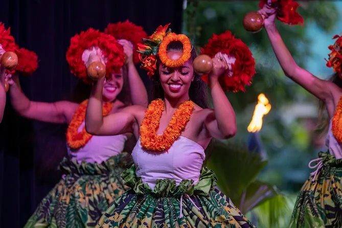 Vous assisterez à des démonstrations de cuisine umu, à une cérémonie du kava, à des danses polynésiennes de plusieurs îles, ainsi qu’à la danse du couteau enflammé.