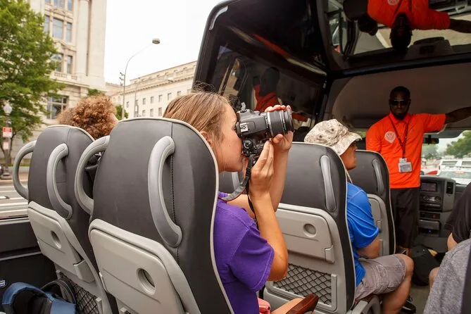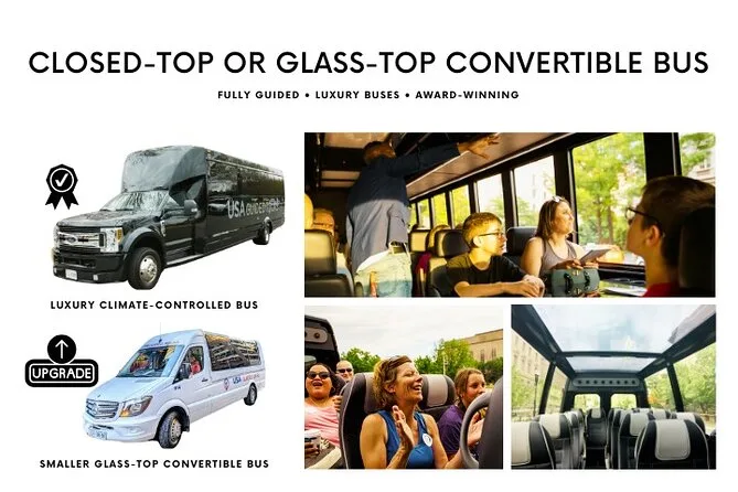 Parcourez Washington DC de mémorial en mémorial sous les lumières de la ville, écoutez les histoires de votre guide et profitez de vues à travers un toit vitré si vous choisissez l’option. Cette visite nocturne inclut plusieurs arrêts comme la Maison Blanche et le Lincoln Memorial, de l’eau en bouteille, et se termine sur une vue inoubliable.