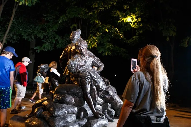 Le bus à toit vitré était vraiment sympa — je n’arrêtais pas de lever la tête pour apercevoir le dôme du Capitole se faufiler entre les arbres pendant que nous roulions. À chaque arrêt (la Maison Blanche, puis le mémorial de la Seconde Guerre mondiale), Marcus partageait des anecdotes courtes — juste assez pour imaginer ce que c’était il y a des décennies. J’ai essayé de prendre une photo du Jefferson Memorial se reflétant dans les lumières du Tidal Basin, mais mon téléphone ne rend jamais ça aussi bien qu’en vrai. On a ri quand quelqu’un a tenté de prononcer « Potomac » comme un local (je ne suis toujours pas sûr d’y arriver). Le mémorial des vétérans de la guerre de Corée avait une atmosphère particulière — même avec d’autres groupes, tout le monde s’est tu un instant.