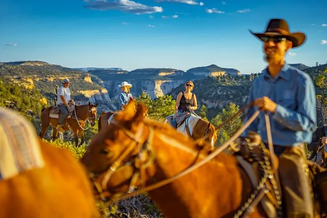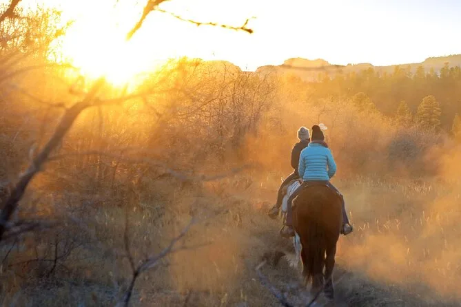 Partez en balade à cheval avec un guide local dans l’Est de Zion, au moment où les ombres dansent sur le canyon et que les couleurs du coucher de soleil illuminent Checkerboard Mesa. Sentez l’air frais, écoutez le bruit des sabots sur le sable, et profitez d’un spectacle inoubliable, même une fois rentré chez vous.