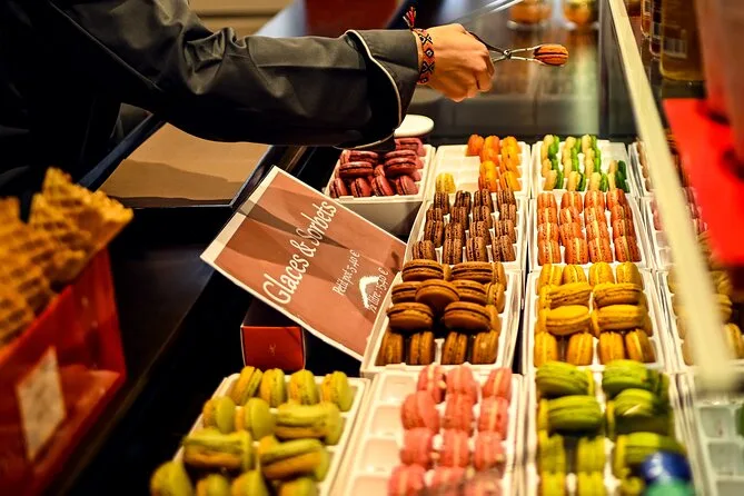 Votre journée comprend des balades guidées dans Saint-Germain-des-Prés avec de nombreux arrêts pour déguster cinq types de fromages français, foie gras, charcuteries et pain frais ; vins fins et vin pétillant ; macarons authentiques ; choux ; sablés ; chocolats artisanaux ; glaces ou pâtisseries de saison ; et un plat secret surprise — le tout accompagné par un guide qui connaît parfaitement les saveurs parisiennes.