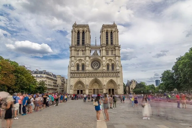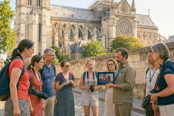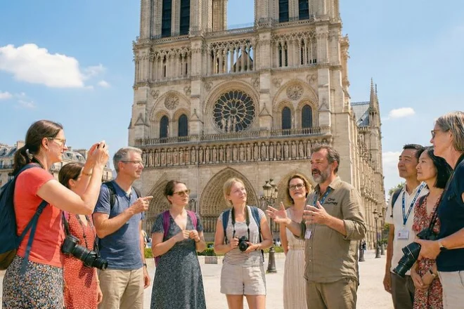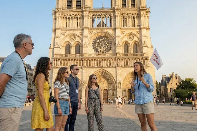 Commencez par une balade guidée autour de la façade de Notre-Dame — des histoires et détails qu’on ne remarque pas seul — puis entrez librement dans la cathédrale. Prenez le temps d’admirer les vitraux, les reliques sacrées et la pierre millénaire. Ce mélange de guide expert et de découverte solo rend l’expérience unique, et elle reste gravée longtemps après votre départ.