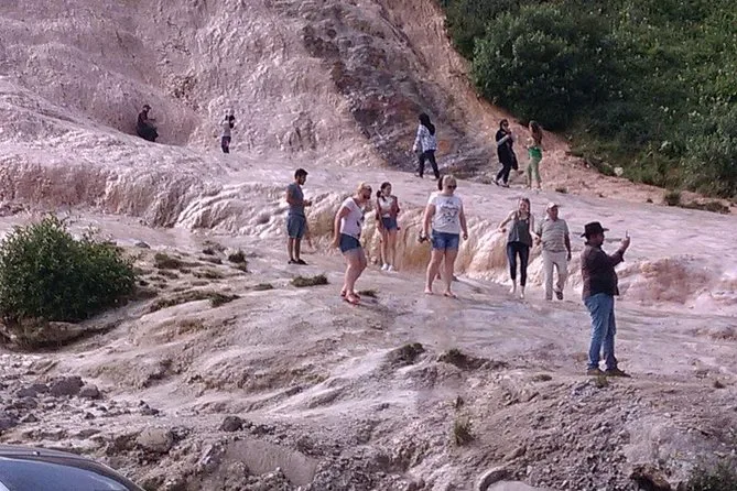 Il y a aussi une source minérale au bord de la route — les locaux l’appellent « la rivière d’or » à cause de ses dépôts orangés. Le goût ? Métallique et salé, pas pour tout le monde, mais ça vaut le coup d’y goûter rien que pour le fun.