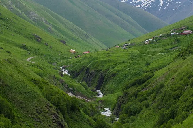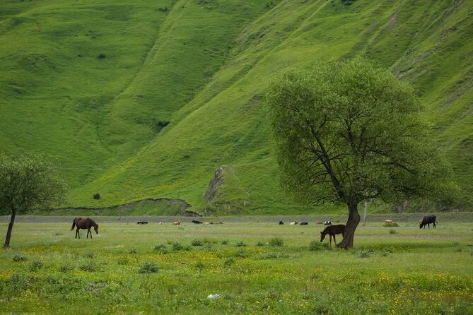 Votre billet couvre le transfert en bus aller-retour entre Stepantsminda (Kazbegi) et Juta, toutes taxes incluses, avec un arrêt bref aux statues de pierre du village de Sno. Apportez simplement vos plans de randonnée et soyez prêts aux horaires fixes pour le retour.