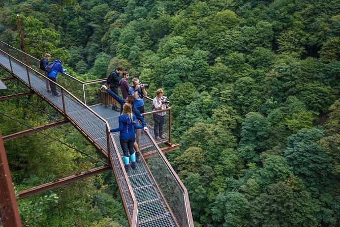 Traversez les passerelles suspendues d’Okatse avec le cœur qui bat un peu plus fort, glissez sous les cascades de Martvili en bateau avec des sourires locaux, puis partez à la découverte de la grotte de Prométhée où le silence semble millénaire. Transport depuis Kutaisi et guide anglophone inclus, il ne vous reste plus qu’à être curieux — et peut-être prévoir un petit encas pour la route.