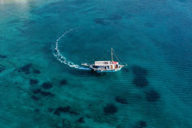 Le tour se fait à bord d’un kaiki en bois traditionnel avec un équipage anglophone.