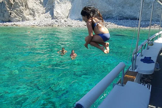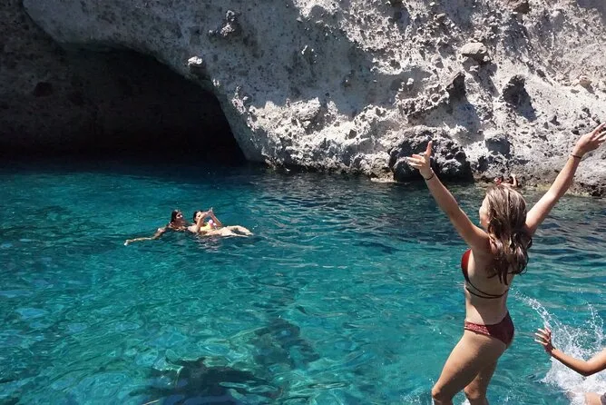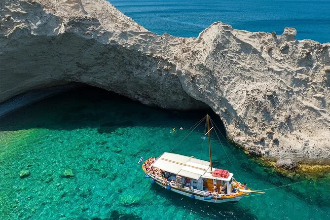 Vous visiterez Panteronissi (la lagune bleue), explorerez des grottes marines près de la grotte de Mastihari, nagerez autour de l’île de Despotiko et profiterez d’un déjeuner à bord.