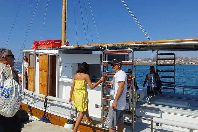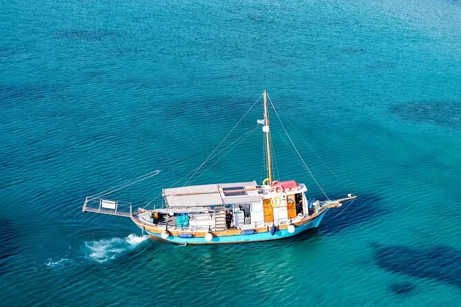 Embarquez sur un kaiki traditionnel à Antiparos avec un petit groupe et un équipage local, naviguez devant des falaises sculptées des Cyclades et nagez dans des criques secrètes accessibles uniquement par la mer. Dégustez un souvlaki grillé et du vin local directement sur le pont après avoir exploré la côte sauvage de Despotiko. Rires, peau salée et moments à garder précieusement au fond du cœur garantis.