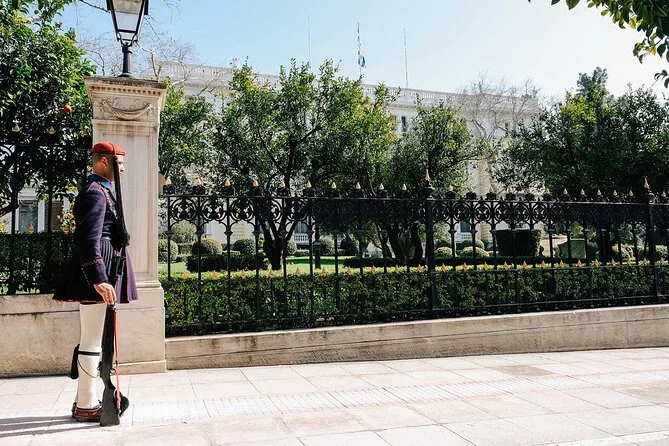 On a ensuite filé vers la place Syntagma. Les gardes avec leurs chaussures à pompons faisaient la relève au Tombeau du Soldat Inconnu. Yannis nous a expliqué à quel point c’est sacré pour les Grecs, tout en me poussant à m’approcher pour les photos — « t’inquiète pas, ils ne clignent pas des yeux », m’a-t-il assuré. La ville semblait vivante : klaxons, odeurs de café qui s’échappaient des kiosques, gens qui gesticulaient dans la circulation. À Plaka, on s’est perdus dans des ruelles étroites peintes en bleu et rose ; une vieille dame balayait son seuil et nous a fait un clin d’œil. J’ai acheté un koulouri au sésame chez un vendeur ambulant — chaud, moelleux, un peu sucré — et franchement, ce petit encas a presque égalé la magie des caryatides de l’Erechthéion vues un peu plus tôt.