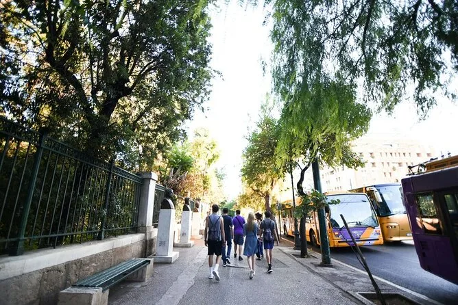 La première chose qui m’a frappé sur la place Syntagma, c’était l’effervescence de la ville — des habitants qui papotent près du métro, le Parlement illuminé derrière nous. Notre guide, Yannis, nous a fait signe depuis les marches en marbre. Il avait ce don de vous mettre à l’aise comme si on se connaissait depuis toujours. Nous avons démarré sur l’avenue Amalias, évitant quelques scooters et respirant les effluves de marrons chauds d’un vendeur ambulant. L’air était encore doux pour débuter la soirée — à Athènes, la fraîcheur ne s’installe vraiment que tard.