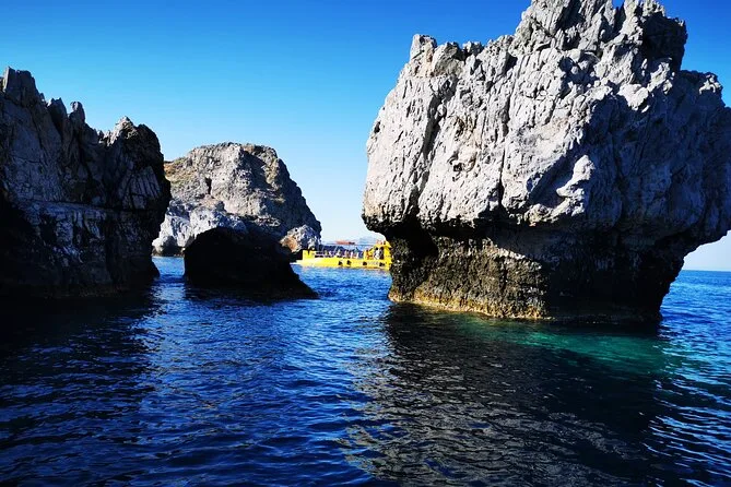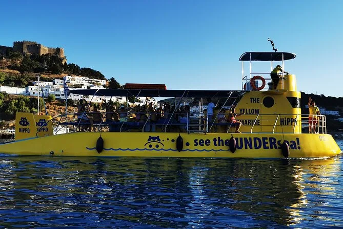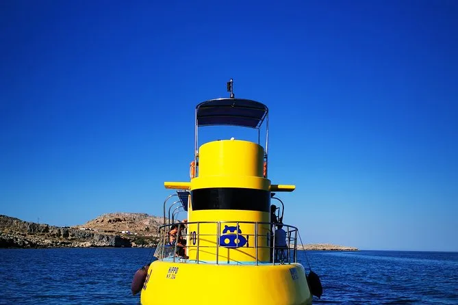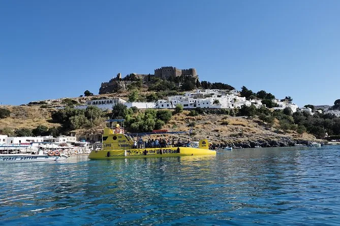 Profitez de deux heures à bord d’un semi-submersible confortable avec cabine climatisée et grandes fenêtres panoramiques le long de la côte de Lindos. Une boisson offerte vous sera servie sur le pont pendant que vous admirez le rocher de Lindos et son acropole, avant de faire une pause baignade ou snorkeling à la baie de Navarone — le tout guidé par des locaux qui partagent leurs histoires tout au long du trajet.