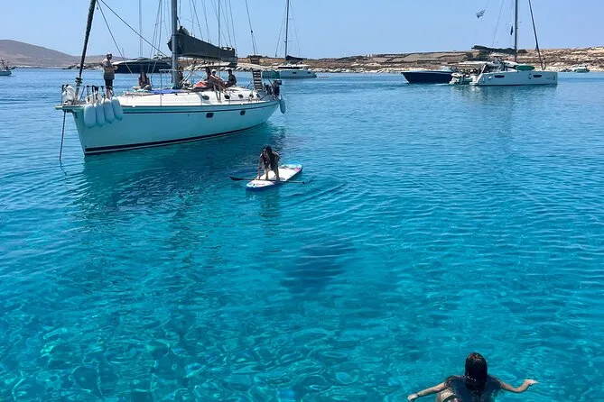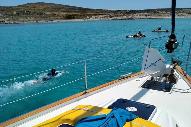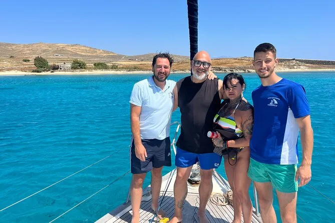 Votre journée comprend la prise en charge gratuite à l’hôtel à Mykonos ou dans les environs, tous les frais et taxes inclus pour éviter les mauvaises surprises. Le déjeuner est préparé à bord par le chef (n’oubliez pas de mentionner vos allergies ou préférences), accompagné de vin blanc ou rosé local et de boissons non alcoolisées. Le matériel de snorkeling est disponible si vous souhaitez plonger dans les eaux limpides autour de l’île de Rhenia.