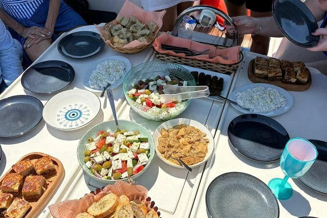 Oui, un déjeuner grec préparé par le chef est inclus, avec vin local et boissons non alcoolisées.