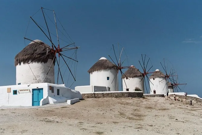 Vous verrez les moulins à vent de Mykonos (Kato Mili), Little Venice, l’église Panagia Paraportiani, le village d’Ano Mera, et le monastère Panagia Tourliani.