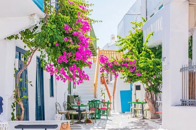 Plongez dans la vie insulaire avec cette visite en petit groupe à Mykonos depuis votre bateau de croisière — explorez des villages tranquilles, touchez la pierre millénaire d’un monastère, sentez le sable fin de Kalafatis sous vos pieds, et terminez dans les ruelles de carte postale avant de retourner au port avec plein de souvenirs (et peut-être quelques pâtisseries au sésame).