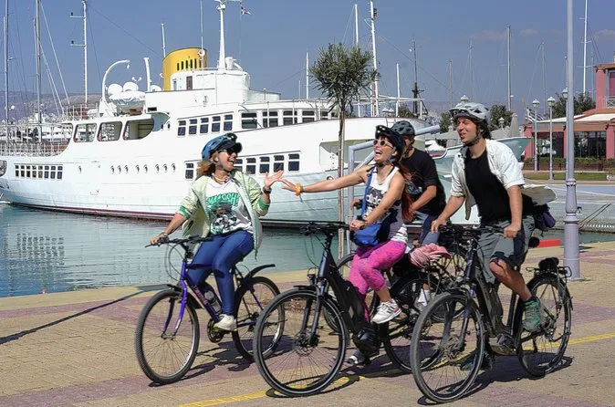 Votre journée comprend l’utilisation d’un vélo électrique de trekking avec casque, l’accompagnement d’un guide anglophone à travers quartiers historiques et pistes cyclables côtières, une pause dégustation de pâtisseries traditionnelles avant d’atteindre la plage de Kalamaki pour un temps libre — baignade possible — puis le retour à Athènes en groupe.