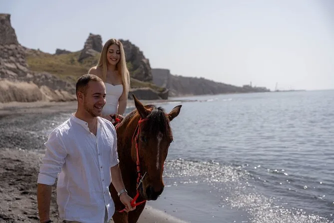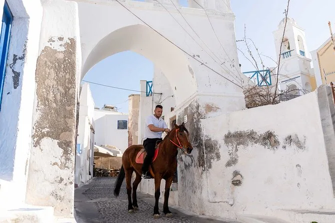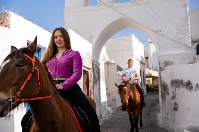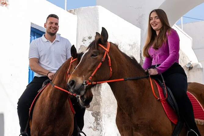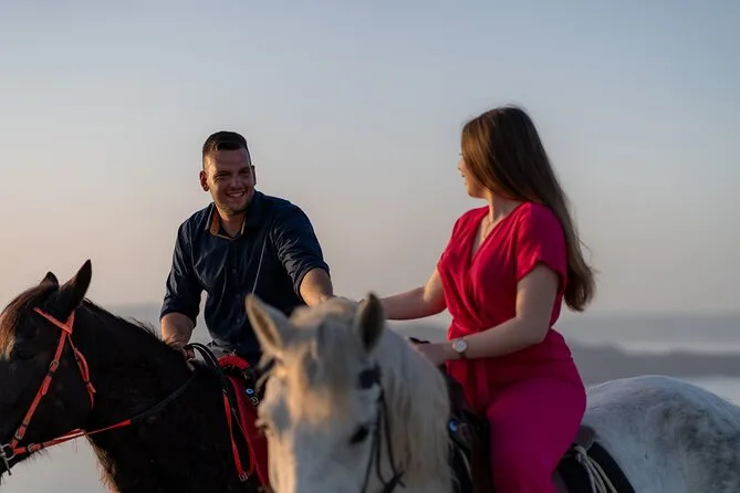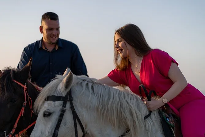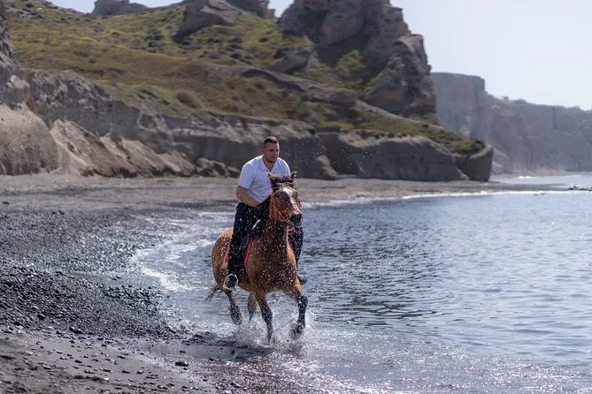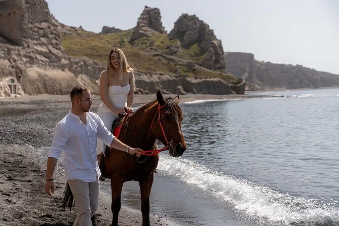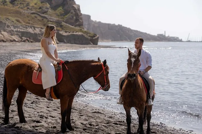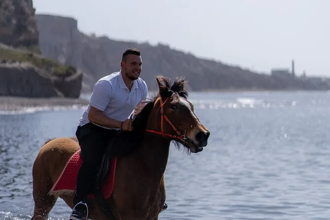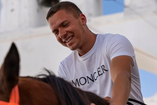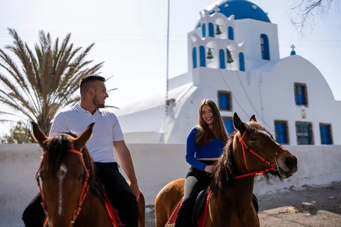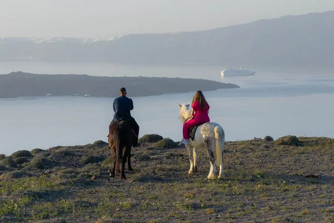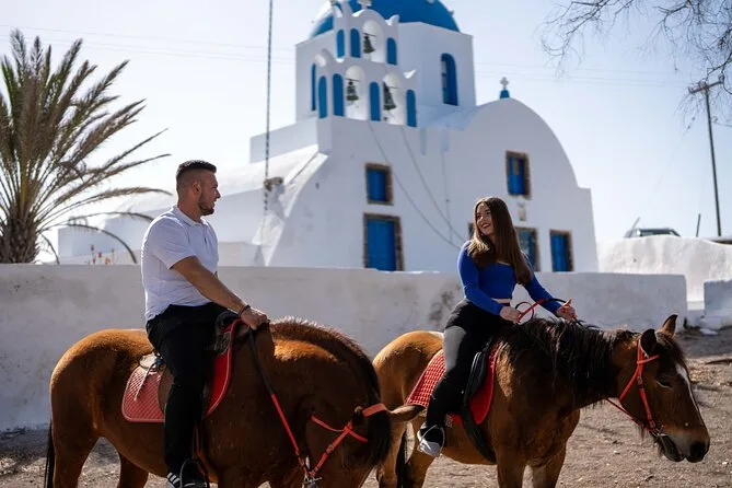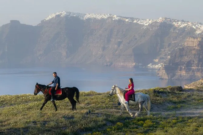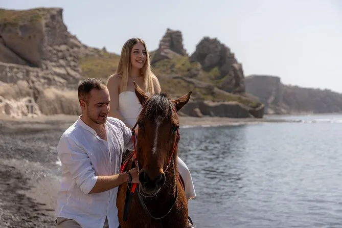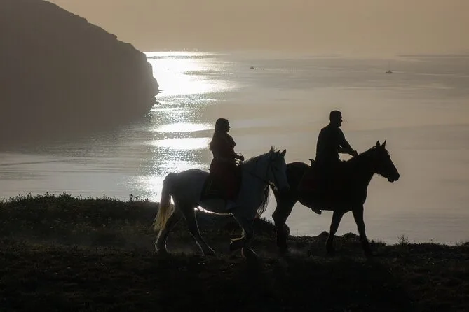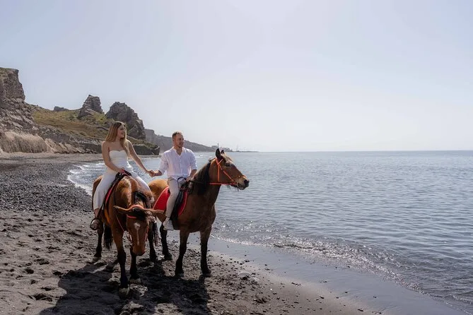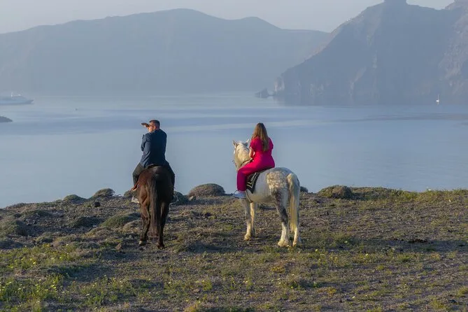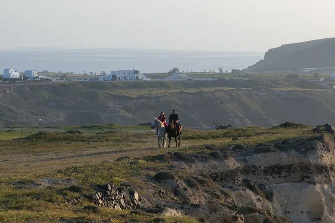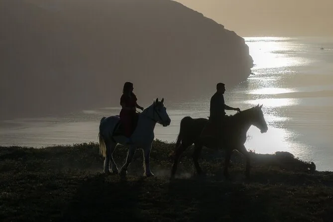 Profitez d’une balade à cheval au départ du village de Megalochori, à travers les vignobles et les sentiers de sable noir de Santorin, jusqu’à la caldeira au coucher du soleil. Guidé par un local et bercé par ses histoires, vous découvrirez des vues du volcan que peu de voyageurs voient de près, ainsi que ces instants précieux (rires, air salé) qui restent gravés longtemps après le voyage.