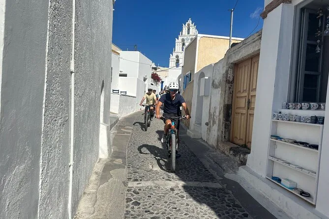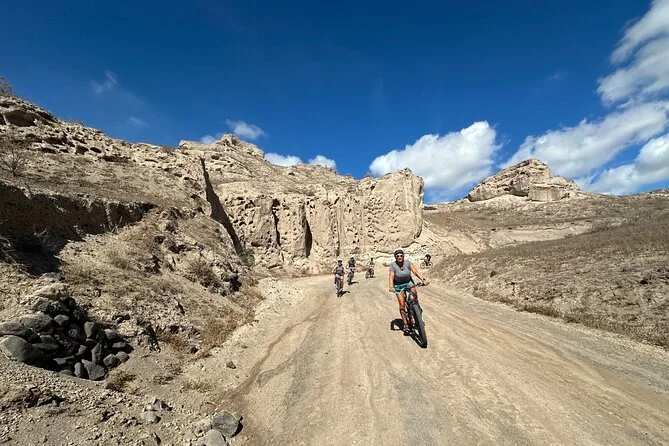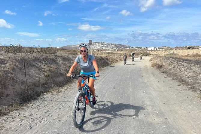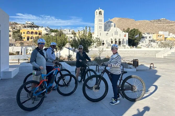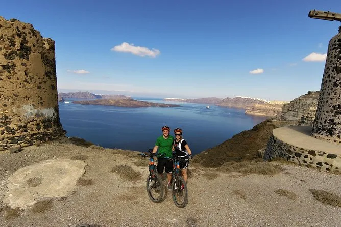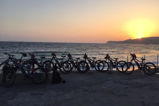Votre journée comprend le transfert aller-retour depuis votre hébergement à Santorin, l’utilisation d’un VTT électrique à suspension intégrale adapté à votre taille (moteur Bosch), un casque et des gants homologués CE, un accompagnement par des guides locaux pros qui connaissent tous les raccourcis entre villages, des barres d’énergie maison pour la pause, de l’eau minérale en bouteille, ainsi que des photos et vidéos prises pendant la balade pour que vous puissiez profiter sans manipuler votre téléphone en roulant vers la plage de Perivolos.
