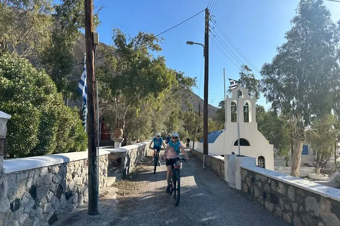 La première chose qui m’a frappé, c’est le bruit du sable noir sous mes baskets — la plage de Perivolos n’est pas du genre carte postale douce, plutôt des petits cailloux qui s’incrustent dans les chaussures. Notre guide, Manos, m’a tendu un casque en souriant : « T’inquiète pas, le vélo électrique fait la moitié du boulot. » Je ne l’ai cru qu’une fois en selle. Il y a un calme étrange quand on quitte la route principale — juste le chant des cigales et ce vent salé venu de la mer. On a croisé un pêcheur tirant ses filets au bord de l’eau. Il nous a fait un signe de la main, j’ai répondu, un peu gauche sur mon Haibike.