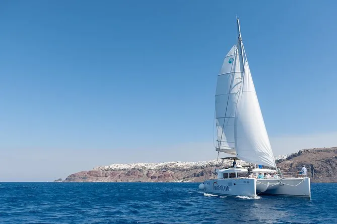 Votre journée comprend la prise en charge aller-retour à l’hôtel (ou point accessible le plus proche), serviettes et couvertures à bord, tout le matériel de snorkeling avec flotteurs si besoin, un repas BBQ grec fraîchement préparé accompagné de vin local ou bière (et boissons non alcoolisées), de la musique pendant la croisière, l’accès aux toilettes à bord, des consignes de sécurité en plusieurs langues — et une équipe décontractée qui veillera à ce que vous ne manquiez rien des plus beaux sites de Santorin avant de vous ramener à votre hébergement.