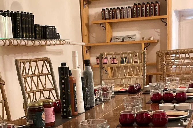 Plongez sous la place animée de Fira dans des caves volcaniques pour une dégustation intime d’huile d’olive et de miel avec un guide local. Goûtez trois huiles d’olive grecques extra vierges, deux miels uniques (dont du miel de pin), accompagnés de snacks et de raki dans une ambiance conviviale en petit groupe — un souvenir qui vous accompagnera à chaque dégustation d’huile d’olive.