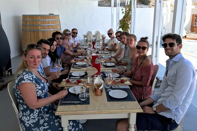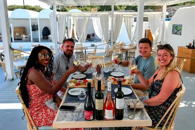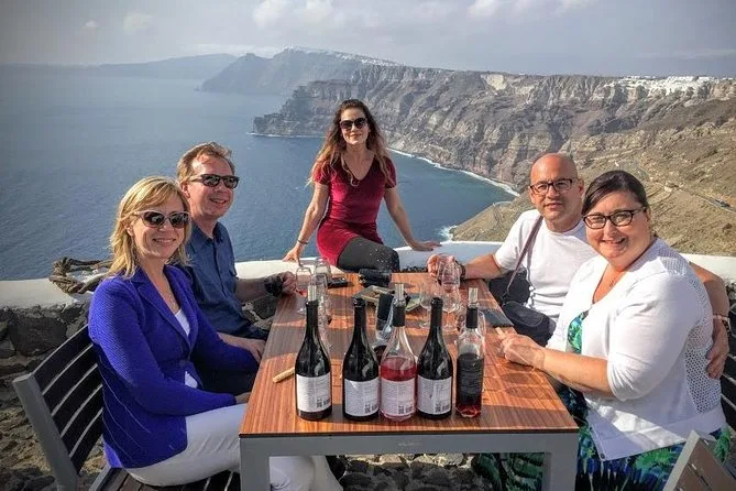 Partez à la découverte des vignobles volcaniques de Santorin avec un guide local, dégustez 10 à 12 vins — dont Assyrtiko et Vinsanto — dans trois domaines familiaux, et partagez fromages grecs et en-cas avec votre petit groupe. Attendez-vous à des rires autour de vos tentatives de grec, à la brise marine qui traverse les caves ouvertes, et peut-être à un nouveau vin préféré qui vous marquera bien après le coucher du soleil.