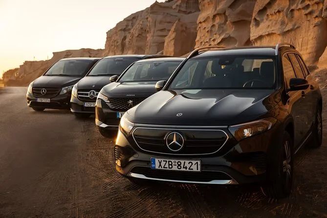 Votre journée comprend une prise en charge flexible depuis votre hôtel, le point de débarquement de croisière, l’aéroport ou le port ferry ; un transport privé en véhicule climatisé avec WiFi ; de l’eau en bouteille à disposition ; et un chauffeur-guide local anglophone qui adapte les arrêts comme Oia, Fira, Pyrgos ou les plages à votre rythme avant de vous déposer où vous le souhaitez.