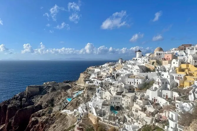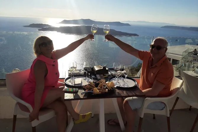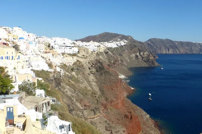 Votre journée comprend un transport privé confortable en van climatisé, de l’eau en bouteille tout au long du trajet, des cartes et des commentaires en direct par un chauffeur-guide local expérimenté (qui vous prendra en charge où vous voulez), ainsi que des arrêts flexibles : balade dans le village d’Oia, visite des ruines d’Akrotiri (avec option guide officiel), pause photo à Red Beach ou déjeuner en bord de mer si vous le souhaitez, promenade dans Pyrgos entre châteaux et églises anciennes — et enfin dégustation de vin au-dessus de la caldeira avant le retour.