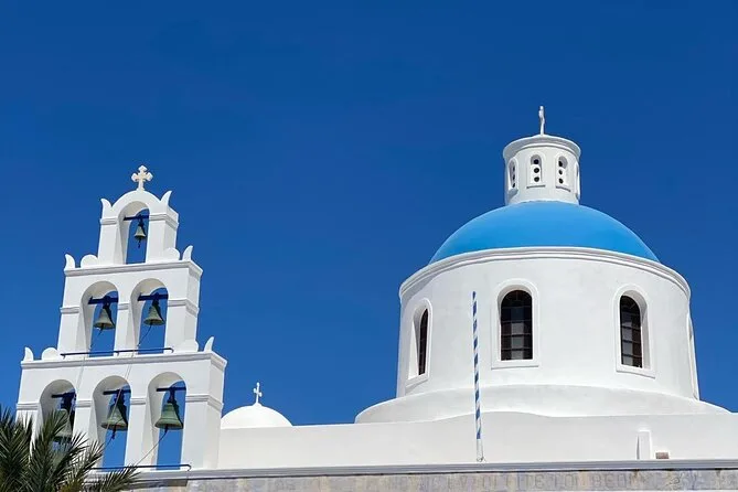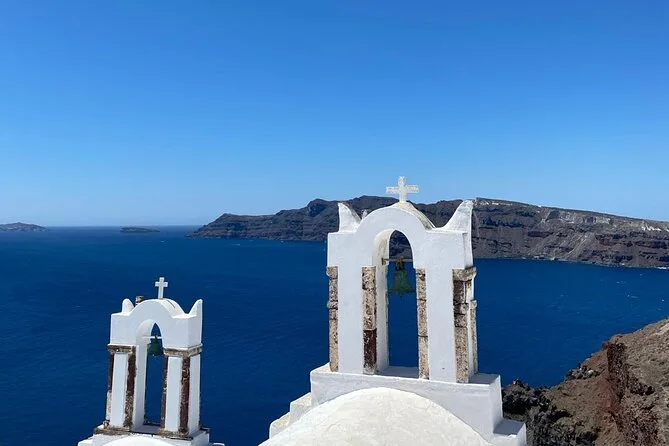 Votre journée comprend une prise en charge directe au port par bateau (pas d’attente pour le téléphérique), un trajet en minibus climatisé entre les villages comme Oia et Megalochori, un guide local anglophone, de l’eau en bouteille, ainsi qu’un retour garanti en bateau jusqu’au tender de votre croisière — tout est organisé selon l’horaire de votre navire pour que vous profitiez pleinement de Santorin.