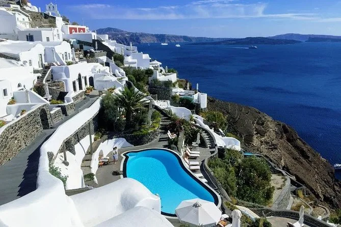 Vous visiterez Oia, Imerovigli, Pyrgos et le Monastère du Prophète Élie.