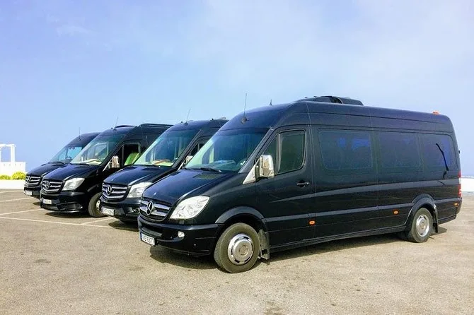 Votre après-midi comprend un transport privé en minivan climatisé avec un guide local sympathique qui vient vous chercher directement à votre hôtel ou point de rendez-vous. De l’eau en bouteille est fournie pendant que vous explorez Pyrgos, Imerovigli, Oia et le Monastère du Prophète Élie avant de revenir après le coucher du soleil.