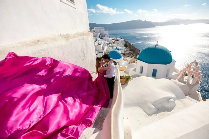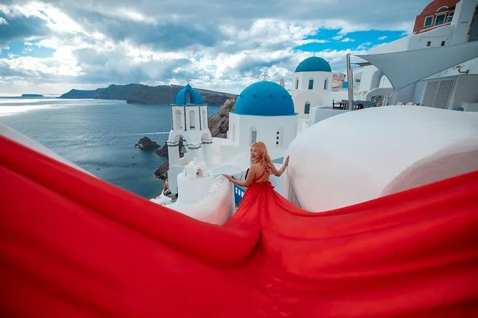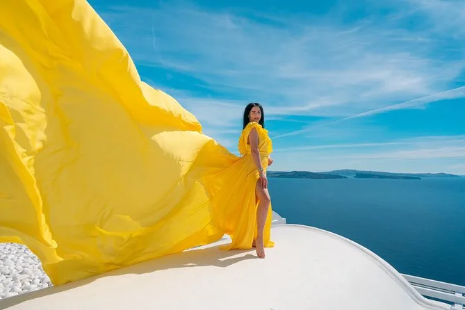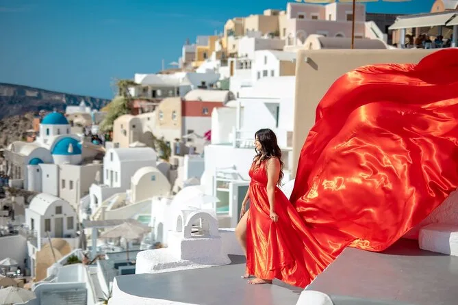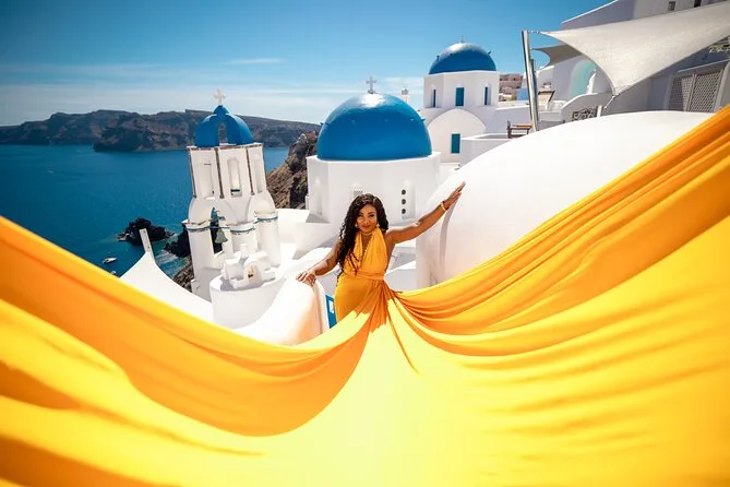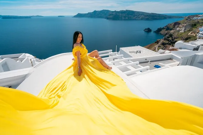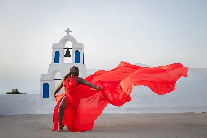 Votre séance photo privée en robe volante à Santorin comprend l’accompagnement d’un photographe local à Oia, l’utilisation de la robe choisie pendant la session, ainsi que la livraison de 30 photos retouchées en haute qualité via une galerie en ligne sécurisée dans les 72 heures suivant la séance.