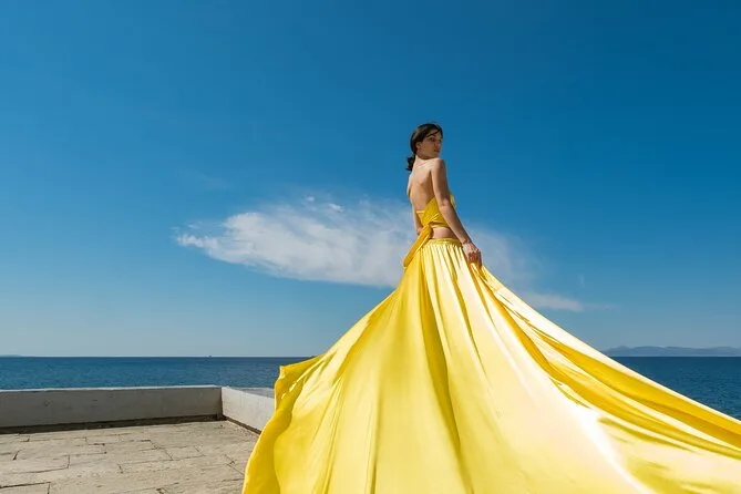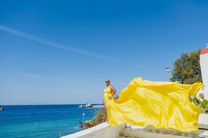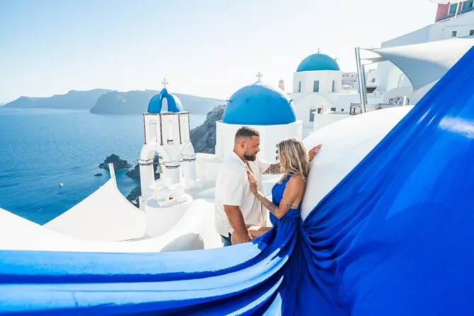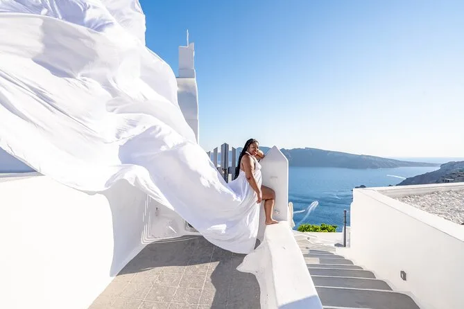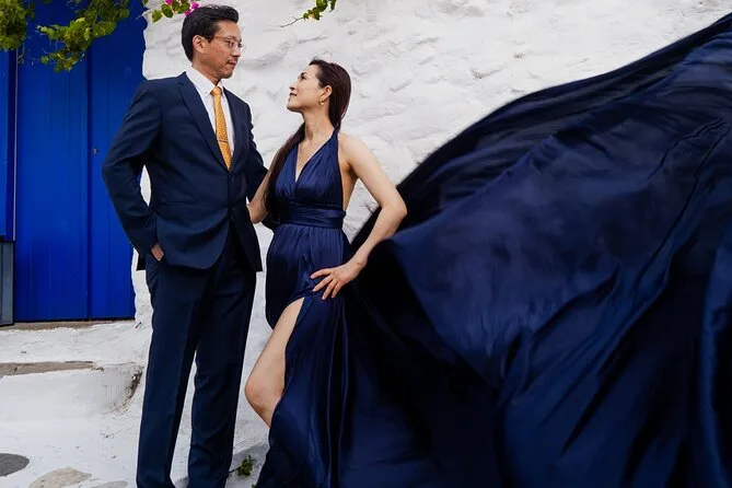 Enfilez une robe volante faite main et déambulez dans les ruelles en marbre d’Oia pendant qu’un photographe local capture votre silhouette devant les célèbres dômes bleus et la caldeira de Santorin. Transfert depuis l’hôtel à Oia ou Imerovigli, aide pour choisir la couleur de votre robe, une assistante pour faire voler la traîne, et 50 photos retouchées envoyées après la séance. Vous allez adorer cette expérience unique.
