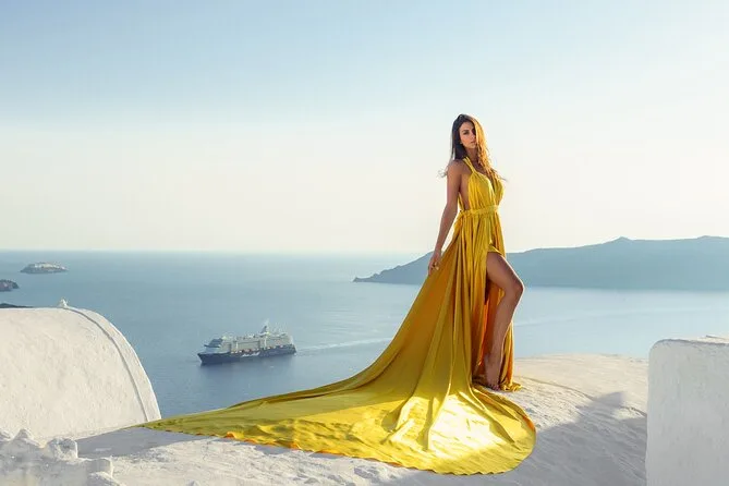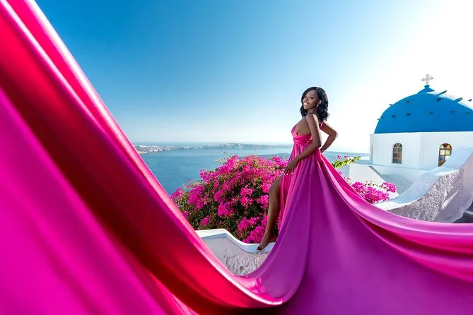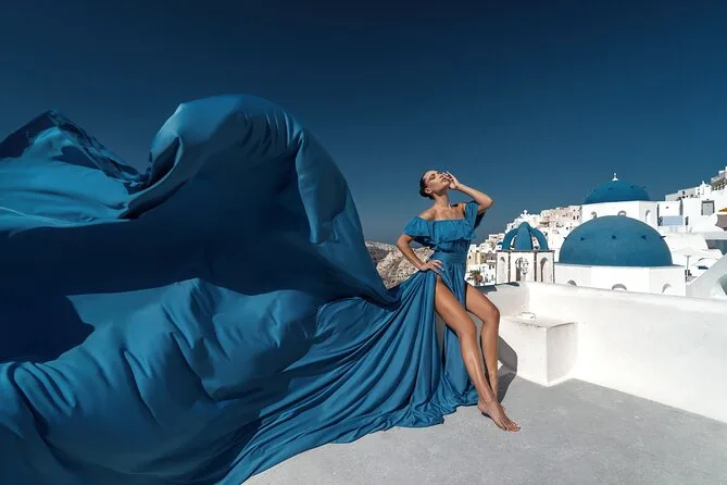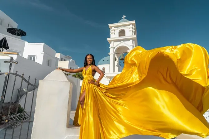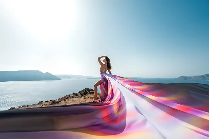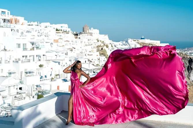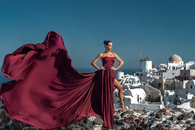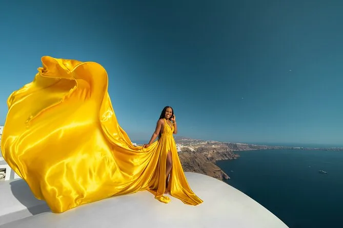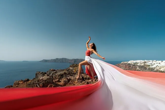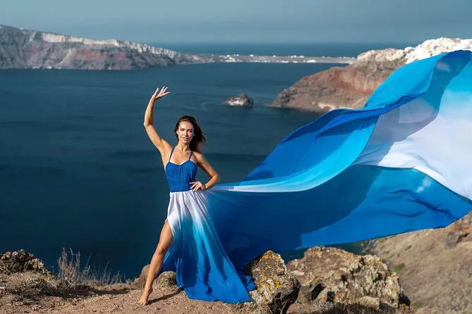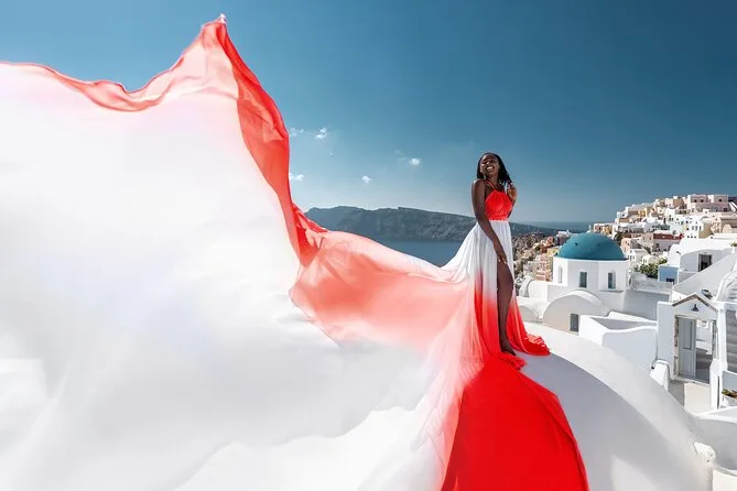 Enfilez une robe volante spectaculaire pour votre séance photo à Santorin avec un photographe local et un assistant qui vous mettent à l’aise — même si vous êtes un peu timide au début. Choisissez votre robe préférée à l’avance, bénéficiez de conseils créatifs pendant la séance, et recevez vos photos numériques brutes et retouchées après. Rires, un peu de folie et des instants où vous vous sentirez vraiment transformée.