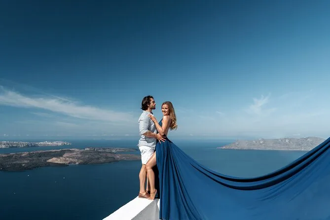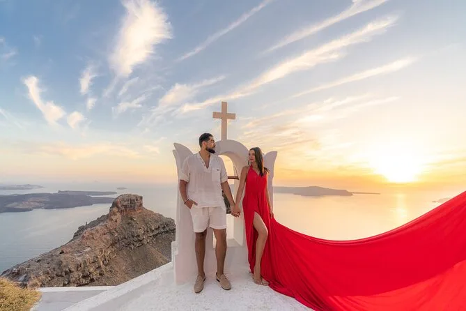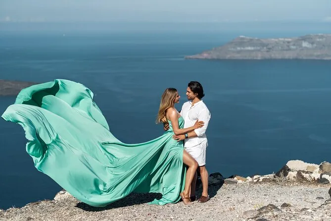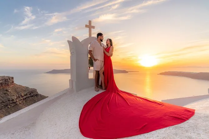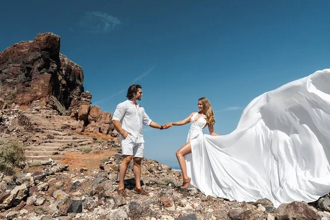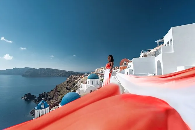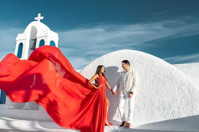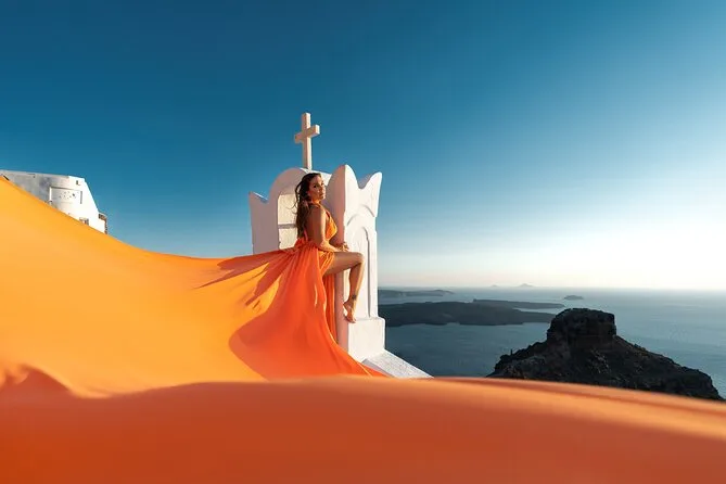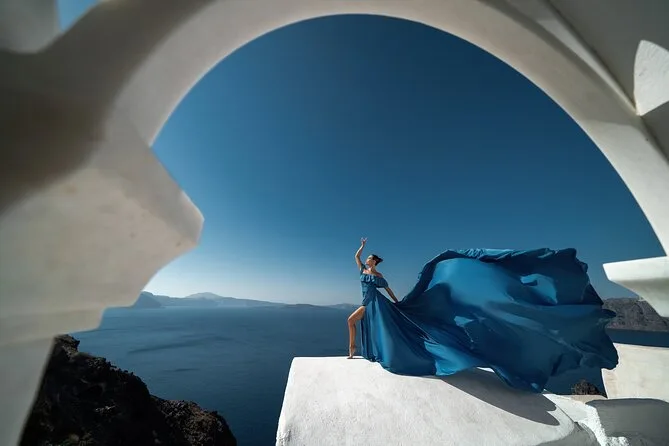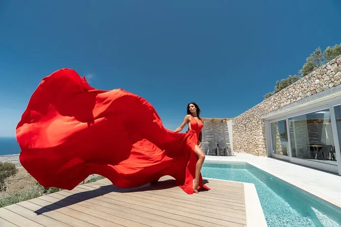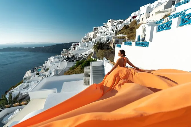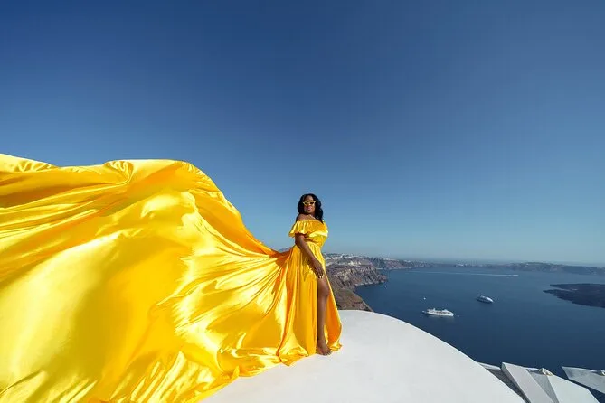Enfilez une robe volante spectaculaire pour votre séance photo à Santorin avec un photographe local et un assistant qui vous mettent à l’aise — même si vous êtes un peu timide au début. Choisissez votre robe préférée à l’avance, bénéficiez de conseils créatifs pendant la séance, et recevez vos photos numériques brutes et retouchées après. Rires, un peu de folie et des instants où vous vous sentirez vraiment transformée.
