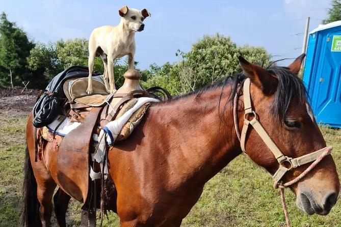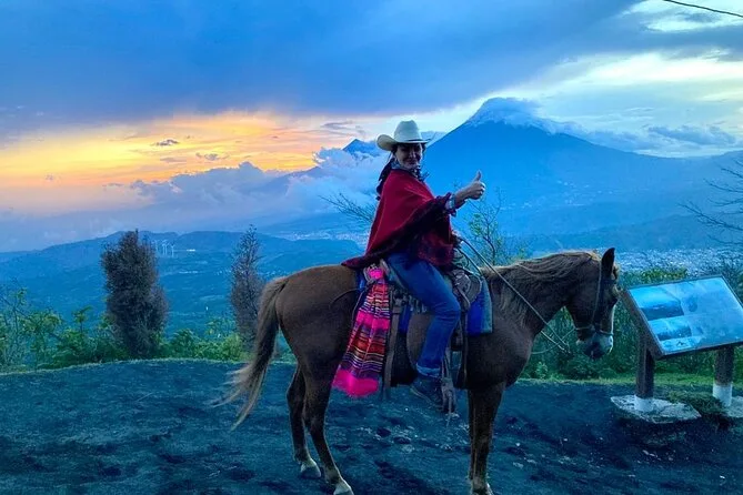 Votre journée comprend un transport privé depuis votre hôtel, des chevaux calmes sauvés adaptés à votre niveau, des guides certifiés INGUAT et des cowboys, des arrêts dans des villages locaux (boissons incluses), ainsi qu’un brunch gourmet avec cuisine maya et pizza cuite sur lave brûlante — avant de rentrer confortablement.
