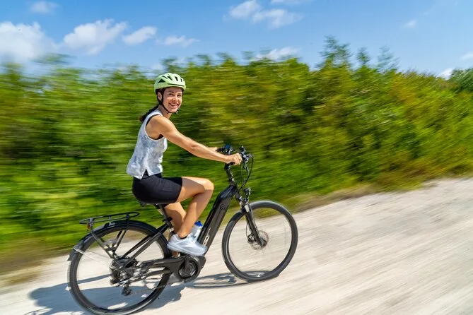 Le parcours utilise des vélos électriques qui facilitent le pédalage, mais une condition physique modérée est recommandée ; déconseillé aux femmes enceintes ou aux personnes ayant des problèmes cardiaques.