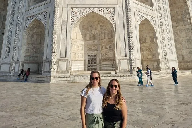 On avait pris la formule avec prise en charge car se débrouiller avec les billets à 5h du matin aurait été un cauchemar (Rajeev s’est occupé de tout). De l’eau en bouteille nous attendait dans la voiture — vous en aurez besoin après avoir déambulé une heure à admirer. Tout ça semblait à la fois irréel et profondément apaisant ; rester là à voir la lumière du soleil caresser ce marbre, c’est un de ces moments qui vous marquent plus longtemps que prévu. Je ne sais toujours pas trop comment le décrire — il faut sans doute le vivre.