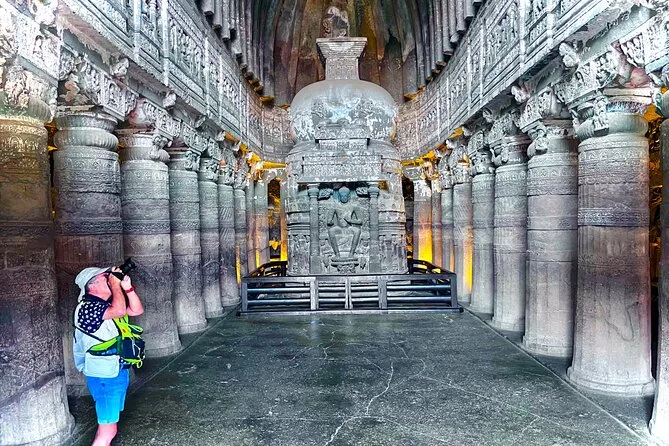 Votre séjour de deux jours comprend la prise en charge et le retour à l’hôtel où que vous soyez dans Aurangabad, ainsi que tous les transferts entre les sites en voiture climatisée avec eau en bouteille. Si vous choisissez l’option guide, il vous aidera à acheter les billets d’entrée (non inclus), gérera les navettes à Ajanta et partagera ses histoires pendant les visites. Les pauses déjeuner sont suggérées mais non comprises ; une lampe torche est fournie pour l’intérieur des grottes.