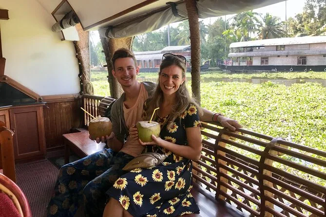 Embarquez pour une croisière privée sur les backwaters du Kerala depuis Kochi, au cœur de la vie villageoise et des paysages luxuriants avec un guide local. Savourez une eau de coco fraîche à l’arrivée, un déjeuner maison servi sur feuilles de bananier, et un thé avec des encas en fin d’après-midi, tout en glissant le long des canaux bordés de palmiers — des instants inoubliables bien après la fin de la balade.