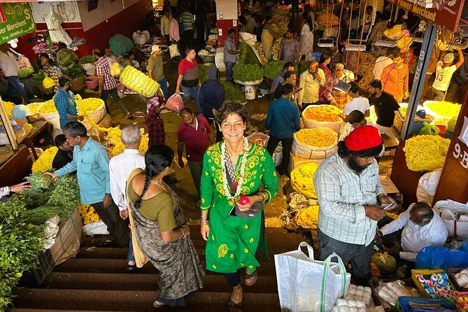 Parcourez le dédale vivant du marché KR avec un guide local, ressentez l’histoire sous les arbres centenaires de Lalbagh, admirez la façade majestueuse du palais de Bangalore et partagez un déjeuner traditionnel du sud de l’Inde au MTR. Attendez-vous à des surprises — bénédictions au temple du Taureau ou parfums de mangue au marché — qui restent gravées longtemps après votre départ.