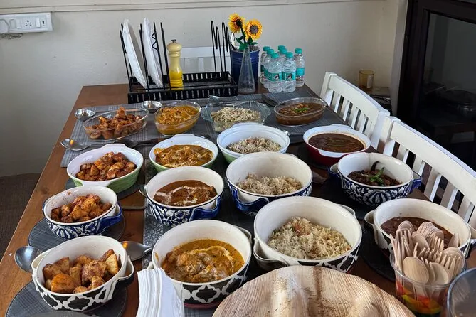 Votre journée comprend un cours pratique dans une cuisine familiale à Delhi avec tous les ingrédients fournis ; un déjeuner (ou dîner) avec vos plats ; eau en bouteille, thé, café et boissons non alcoolisées ; recettes imprimées à emporter ; menus adaptables pour végétariens ou autres régimes si vous le précisez à la réservation.