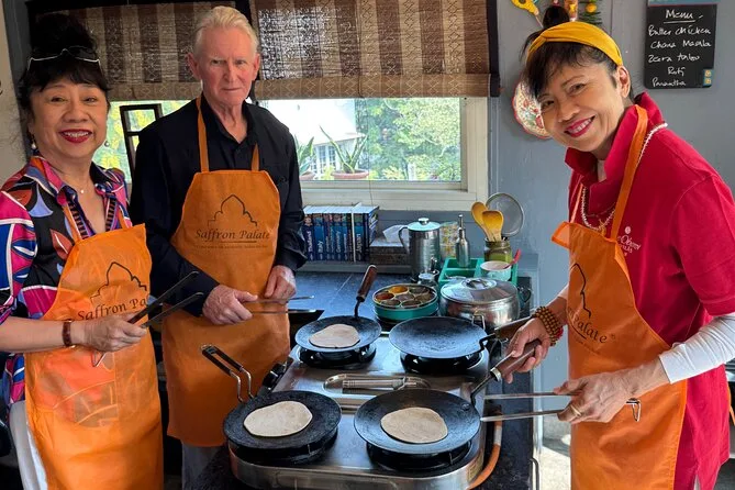 On s’est lancé directement dans la préparation du butter chicken — elle nous a montré comment révéler les saveurs des épices avant d’ajouter quoi que ce soit d’autre. Le crépitement était plus fort que je ne l’imaginais. Elle nous a expliqué pourquoi chaque famille a sa propre recette de biryani (“Tout dépend de ta main avec le masala,” disait-elle). On a pétri la pâte pour le naan et le chapati ; mon premier était un peu bancal, mais ça n’avait pas d’importance. Les fenêtres de la cuisine étaient ouvertes, et on entendait les vendeurs ambulants crier dans la rue en contrebas. C’était comme faire partie d’un vrai quotidien, le temps d’un instant.