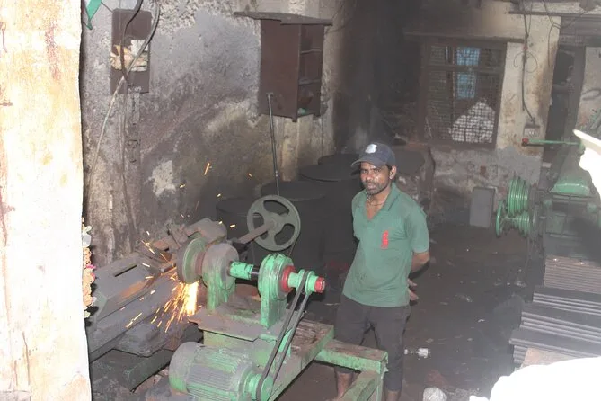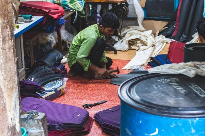 On s’est arrêté dans un atelier de maroquinerie — honnêtement, je n’avais jamais vu des portefeuilles fabriqués aussi vite, entièrement à la main, dans une pièce à peine plus grande que ma cuisine. Le propriétaire, M. Khan, nous a laissé toucher ses créations. Il plaisantait sur le fait que certains sacs finissent en boutique au centre-ville, vendus dix fois plus cher. Sameer nous a expliqué comment ces petites usines font tourner Dharavi, avec des poteries, des textiles et des ateliers de recyclage partout. L’air était chargé d’odeurs d’argile humide et d’une touche sucrée — sûrement un chai en train de mijoter pas loin.